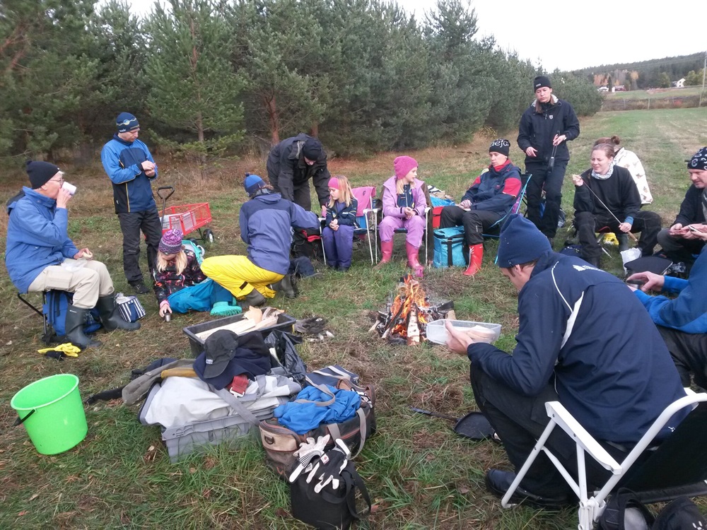 Ta med oömma kläder efter väder och många handskar. Något att plocka kottarna i förslagsvis liten ryggsäck som man sätter fram på magen. Matsäck och något att sitta på, vi gör en eld så det går att grilla.